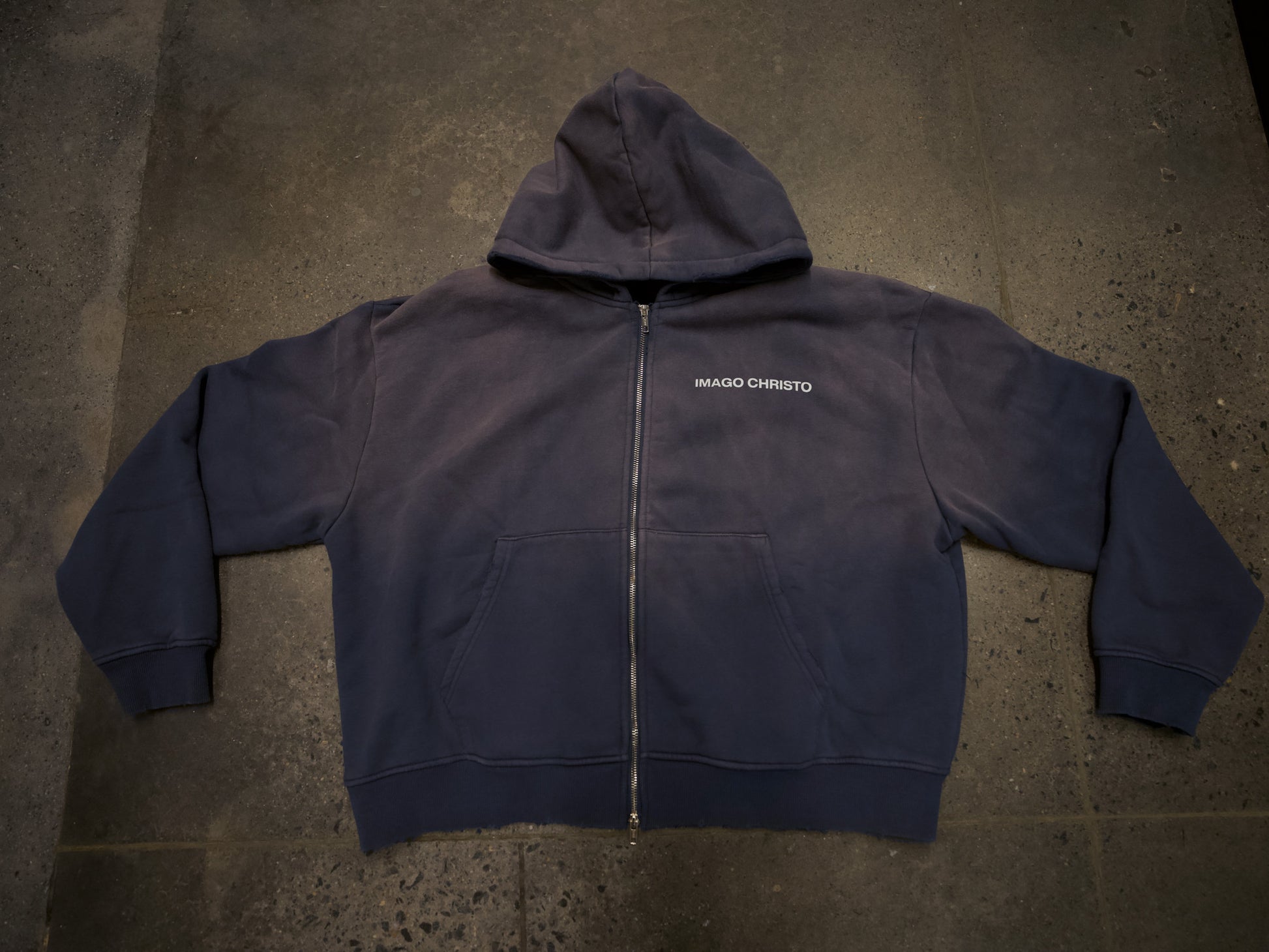BLUE CROPPED “IMAGO CHRISTO” ZIP UP