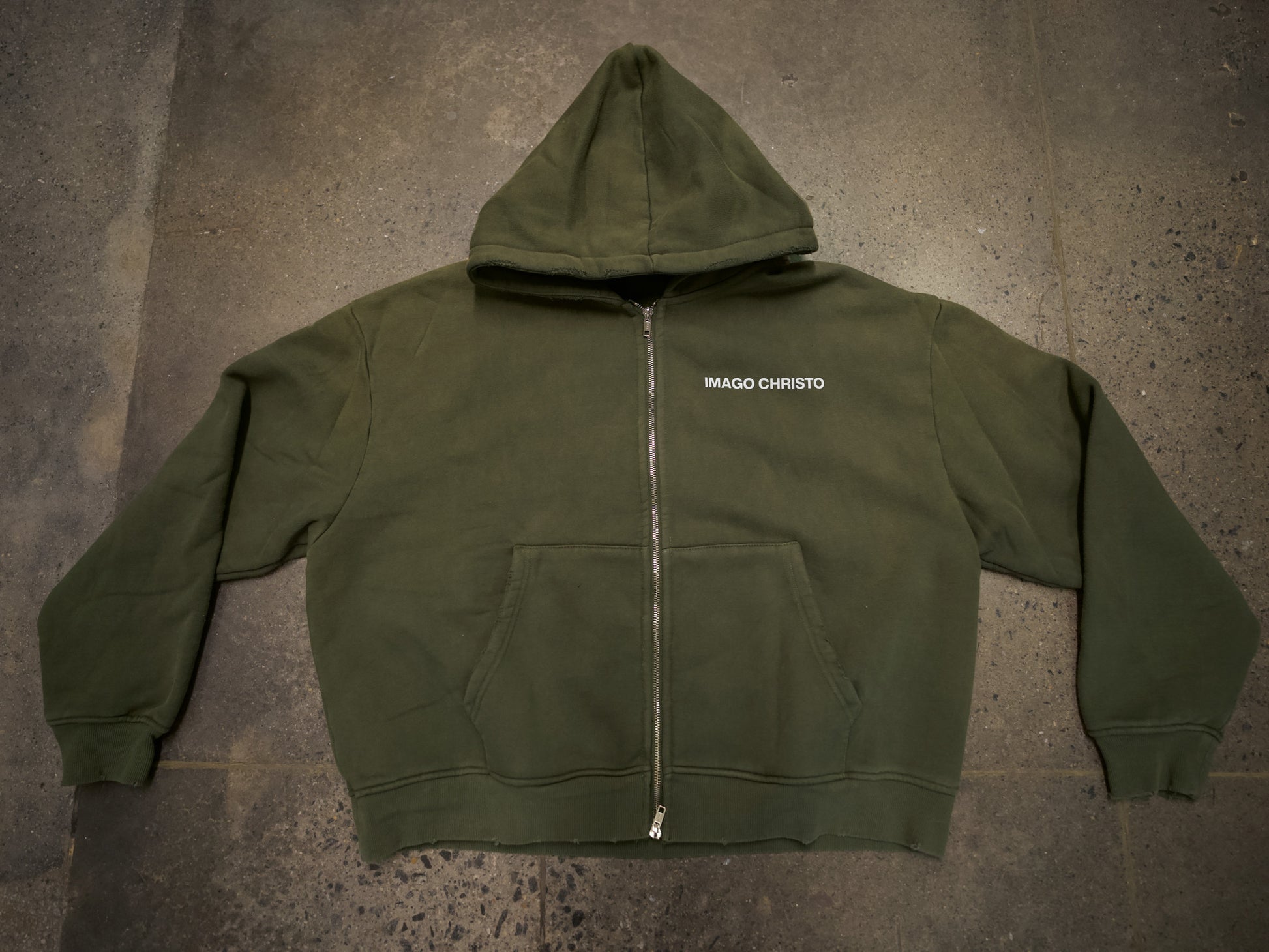 GREEN CROPPED “IMAGO CHRISTO” ZIP UP