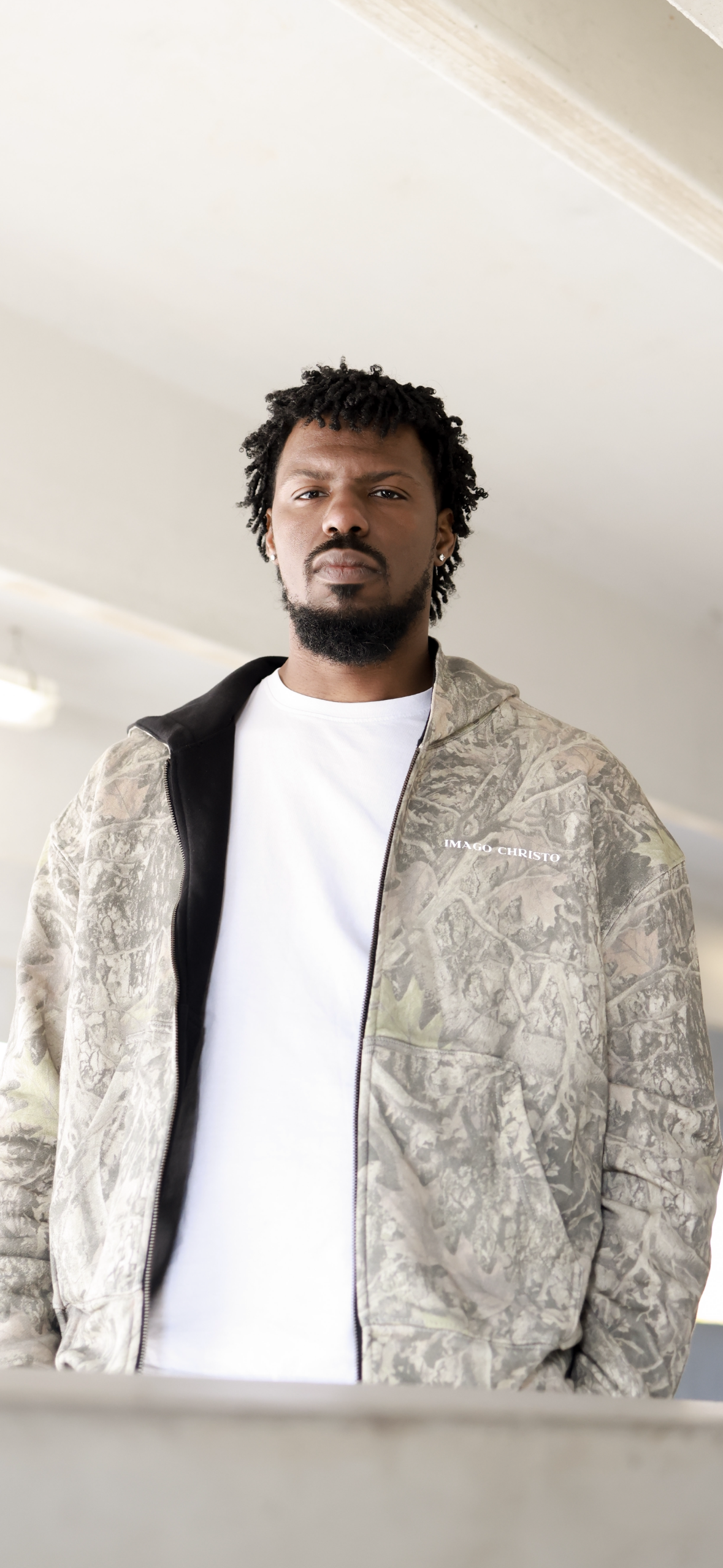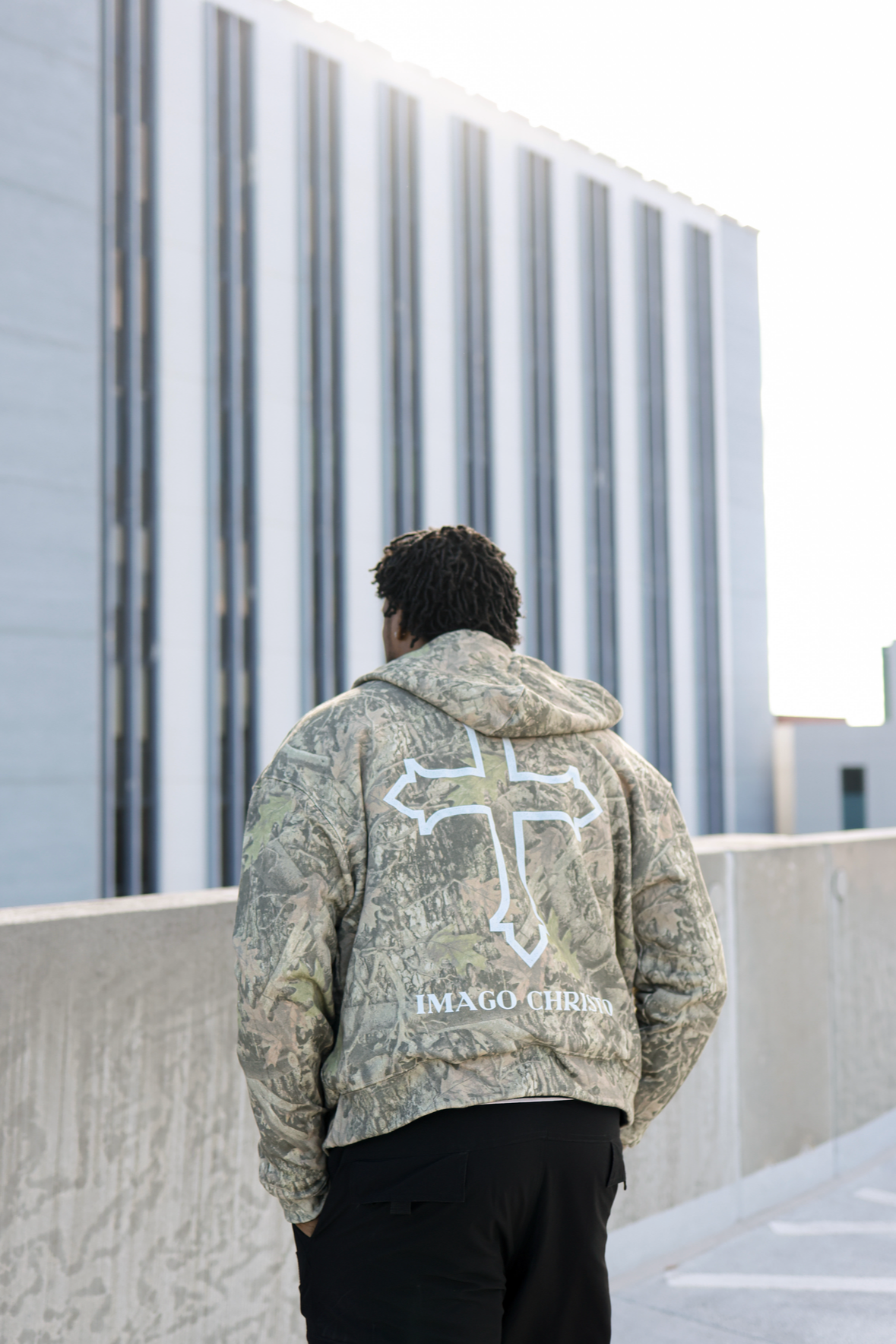 REVERSIBLE BLACK and CAMO IMAGO CHRISTO” ZIP UP